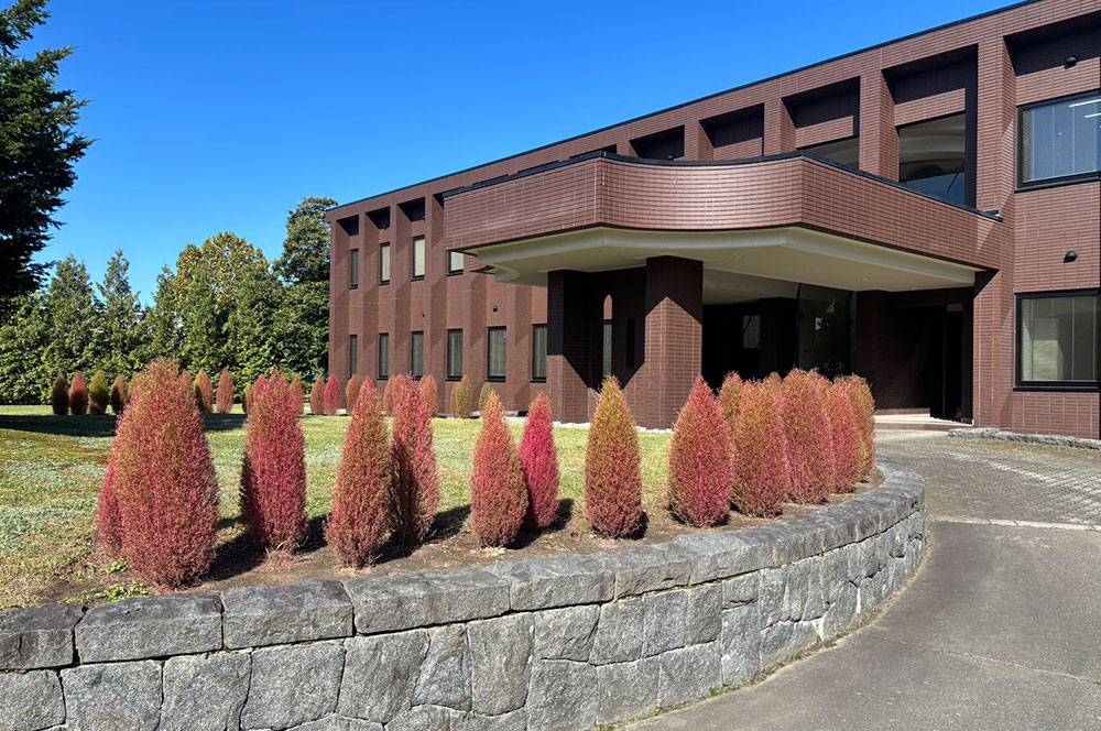 また、色合いにも変化が現れてきました。9月上旬のころは鮮やかな緑色だったコキアですが、今日現在では赤く色づき始めており、秋の訪れを感じさせる景色となっています。朝晩の涼しさとともに、少しずつ深みを増す赤色はとても美しく、建物の前を彩る風景に思わず足を止めて見入ってしまいます。
