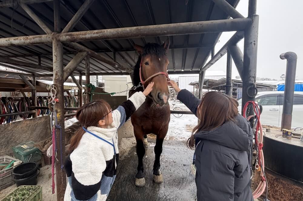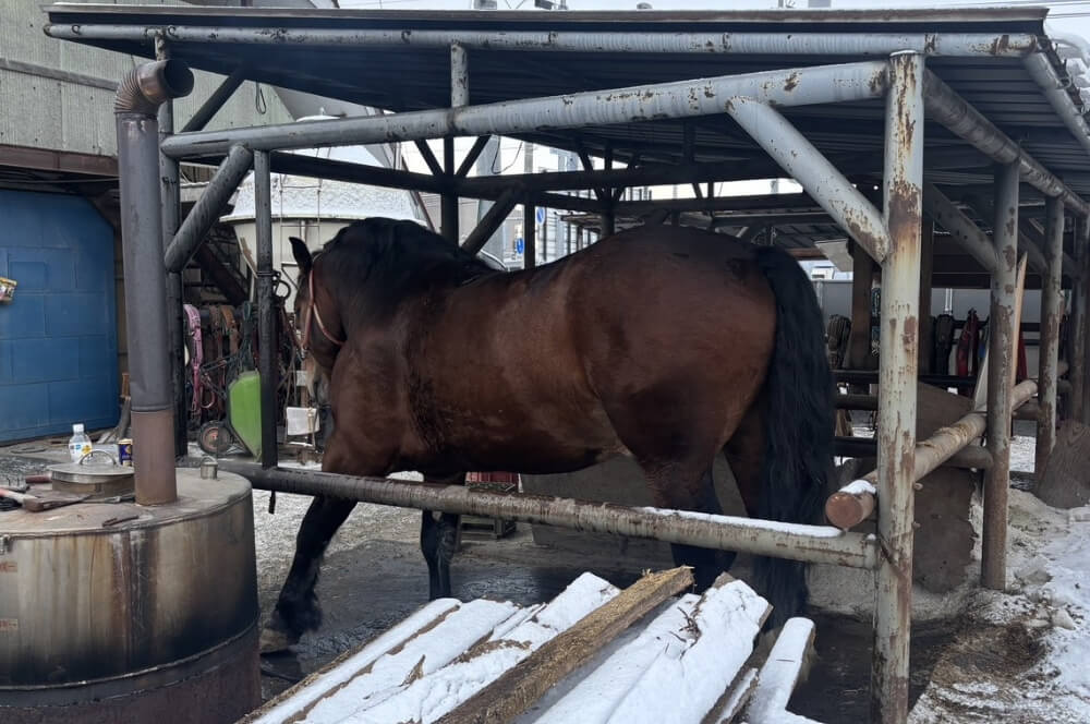 先日、川田社長の愛馬・ラポピージュニアに会いに、ばんえい競馬場へ行ってきました。何度か訪れたことのある場所ではありますが、今回は馬や調教師さん、騎手さんなど、ばんえい競馬に関わる人たちだけが入れる厩舎地区エリアへ。いつも見ていた競馬場とはまったく違う景色に、足を踏み入れた瞬間から胸が高鳴りました。